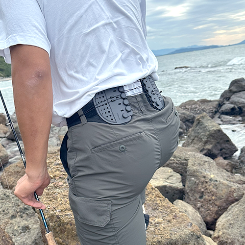 ギアラボフィッシングベルトは、特別な操作や慣れを必要としません。着けるだけで、腰まわりが安定し、立つ、歩く、構えるといった動作が楽になります。日常でも無理なく使える、釣り人のためのフィッシングベルトです。