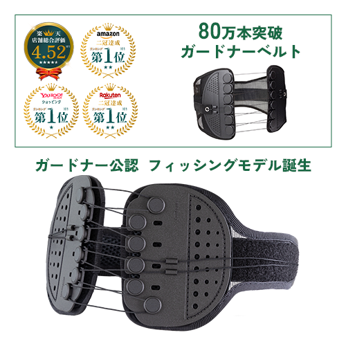 このベルトは、腰サポートで実績ある “ガードナーベルト” をベースに、釣り動作に最適化したフィッシングモデル。ロッド操作や移動の妨げにならないことを前提に設計されています。